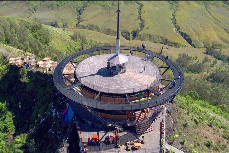 Atraksi yang sesungguhnya berada di puncak bangunan, yaitu area Sky Roof atau dek pandang 360 derajat yang terbuka. Dari titik ini, sejauh mata memandang adalah kemegahan alam yang tiada duanya. Di satu sisi, Anda bisa melihat hamparan Savana Teletubbies yang hijau dan Kaldera Bromo yang ikonik, sementara di sisi lain, puncak Mahameru (Gunung Semeru) yang gagah seringkali terlihat menyemburkan asap vulkaniknya. Jika cuaca cerah, jajaran pegunungan Kawi, Arjuno, dan Welirang pun turut menampakkan diri, menciptakan komposisi panorama yang membuat siapa pun berdecak kagum dan tak henti menekan tombol kamera.